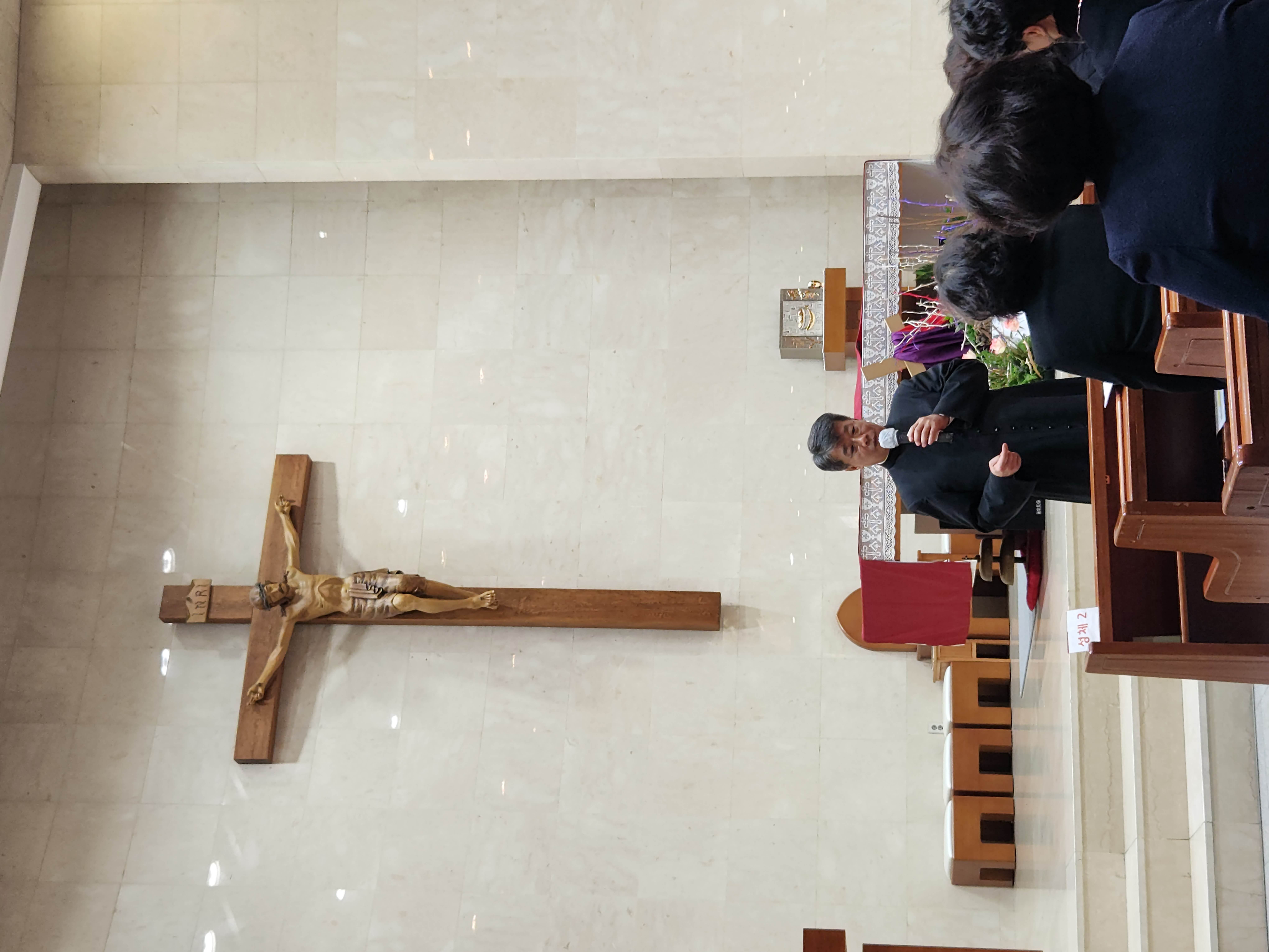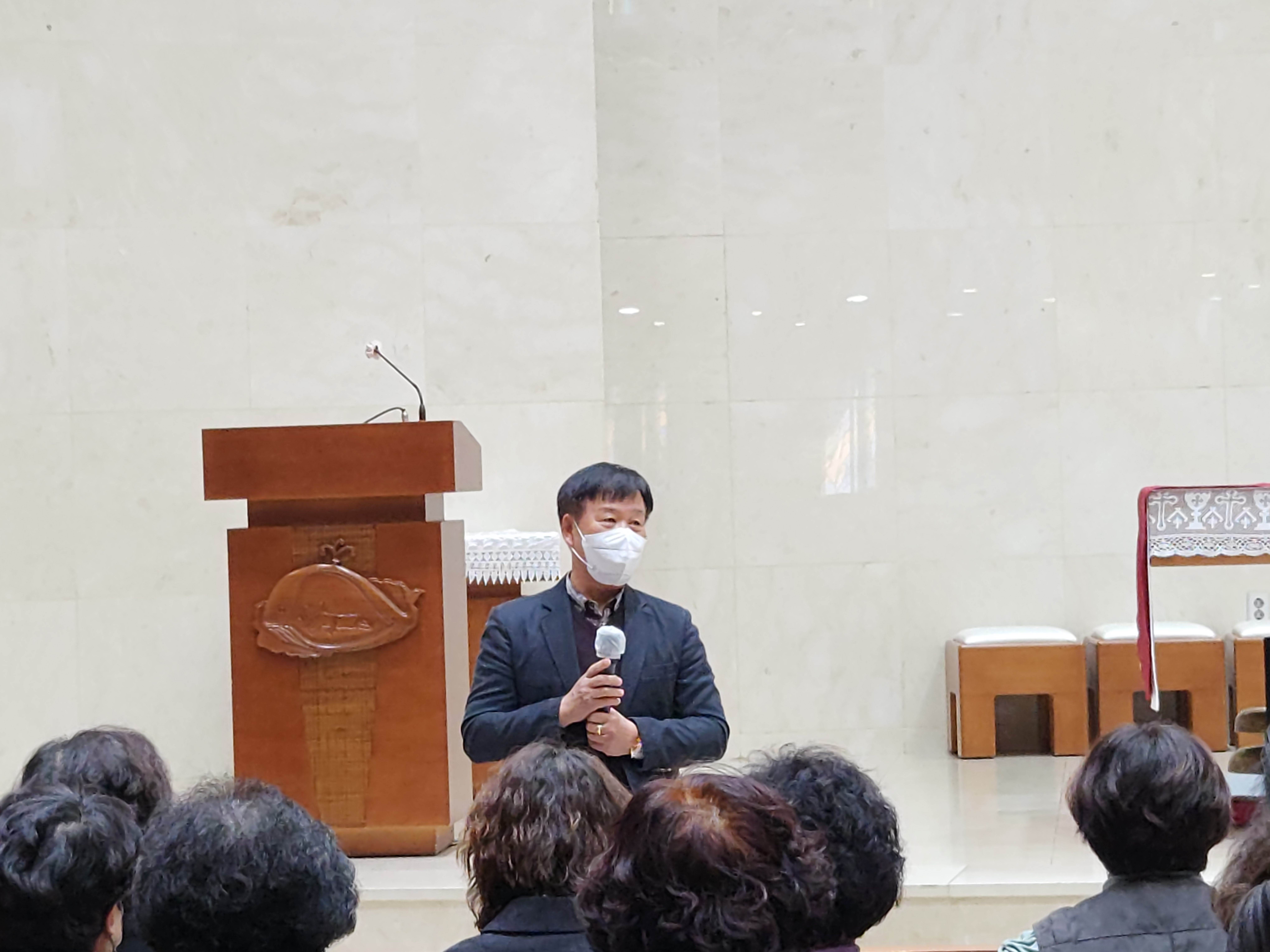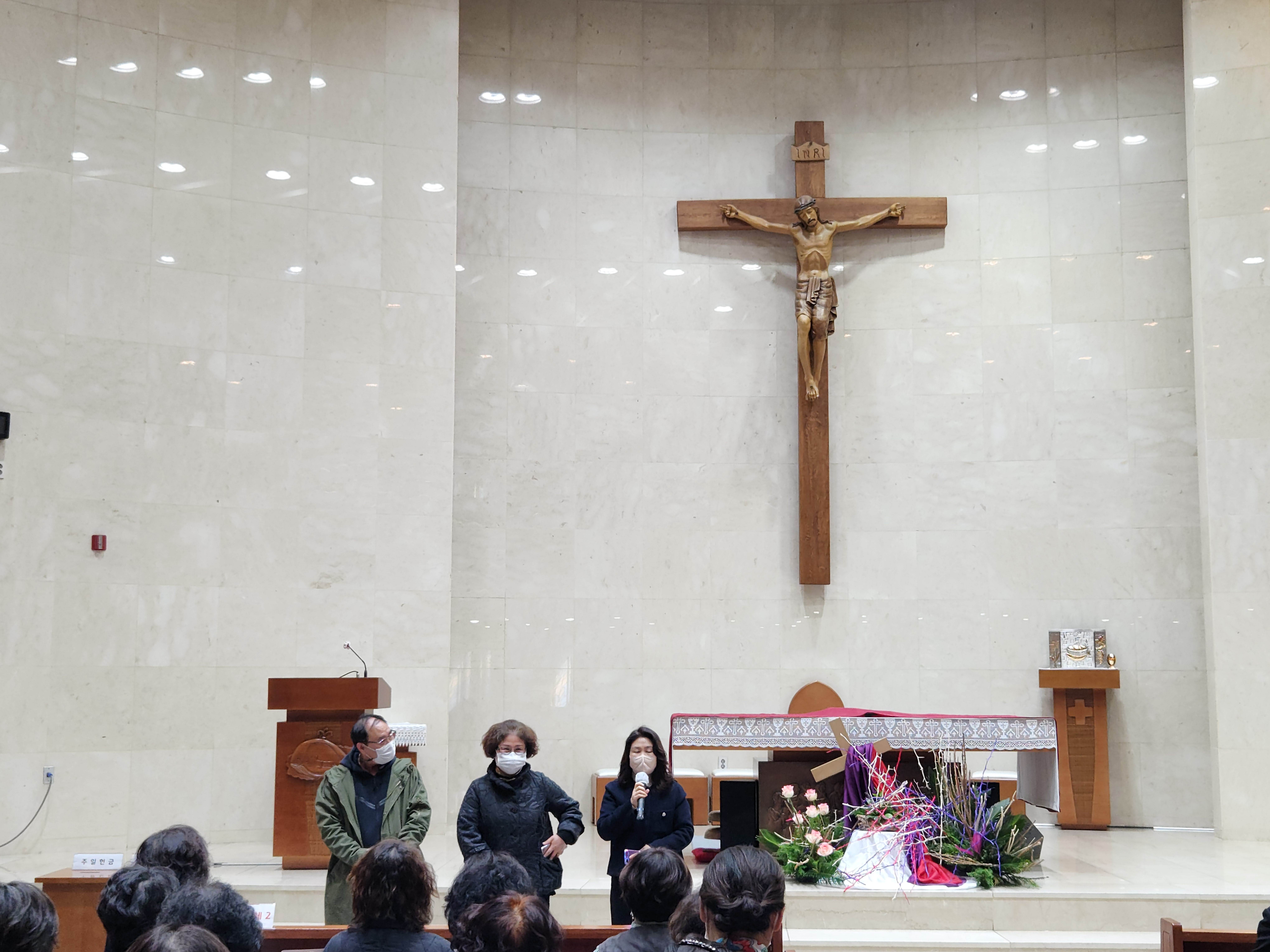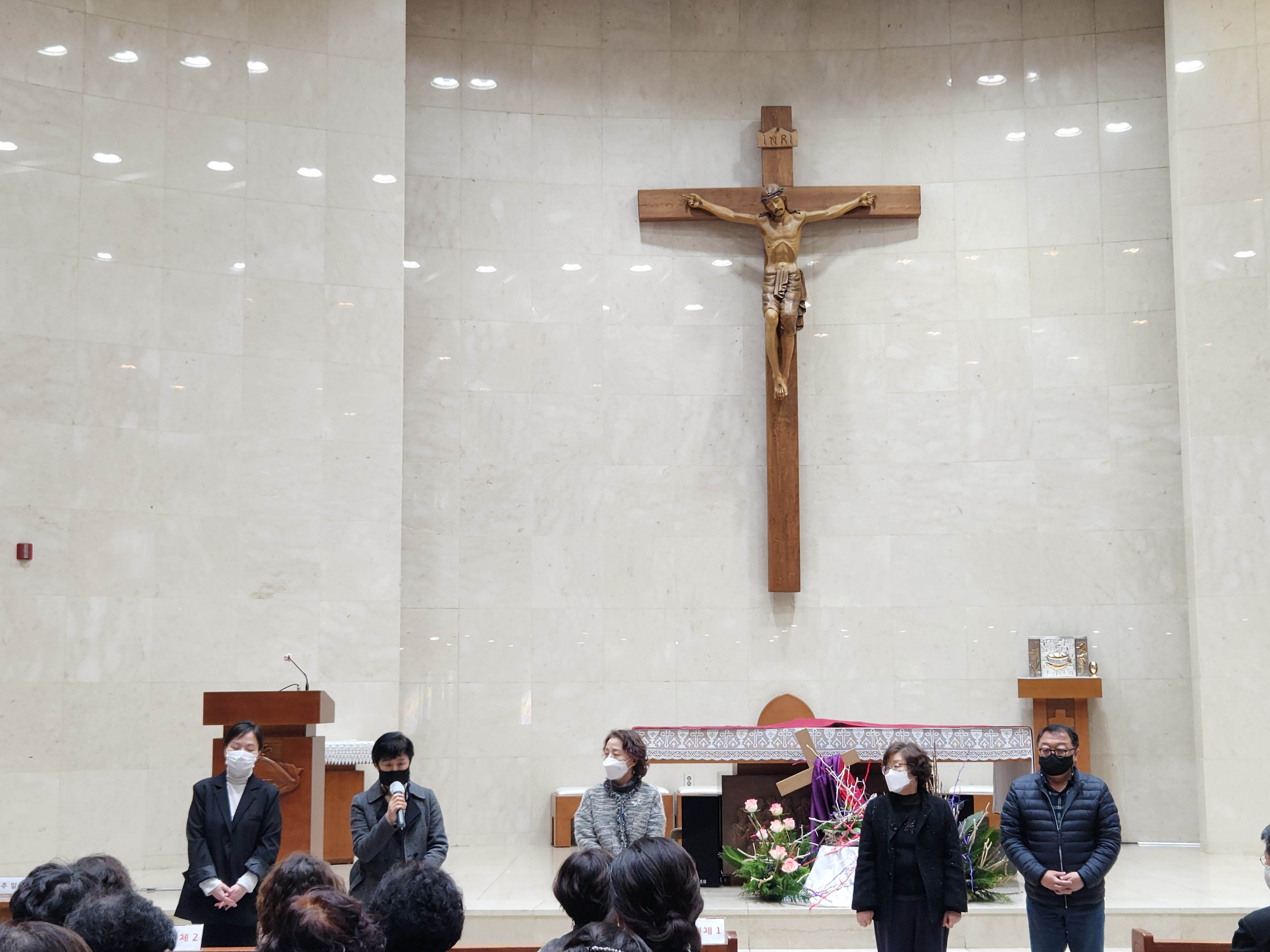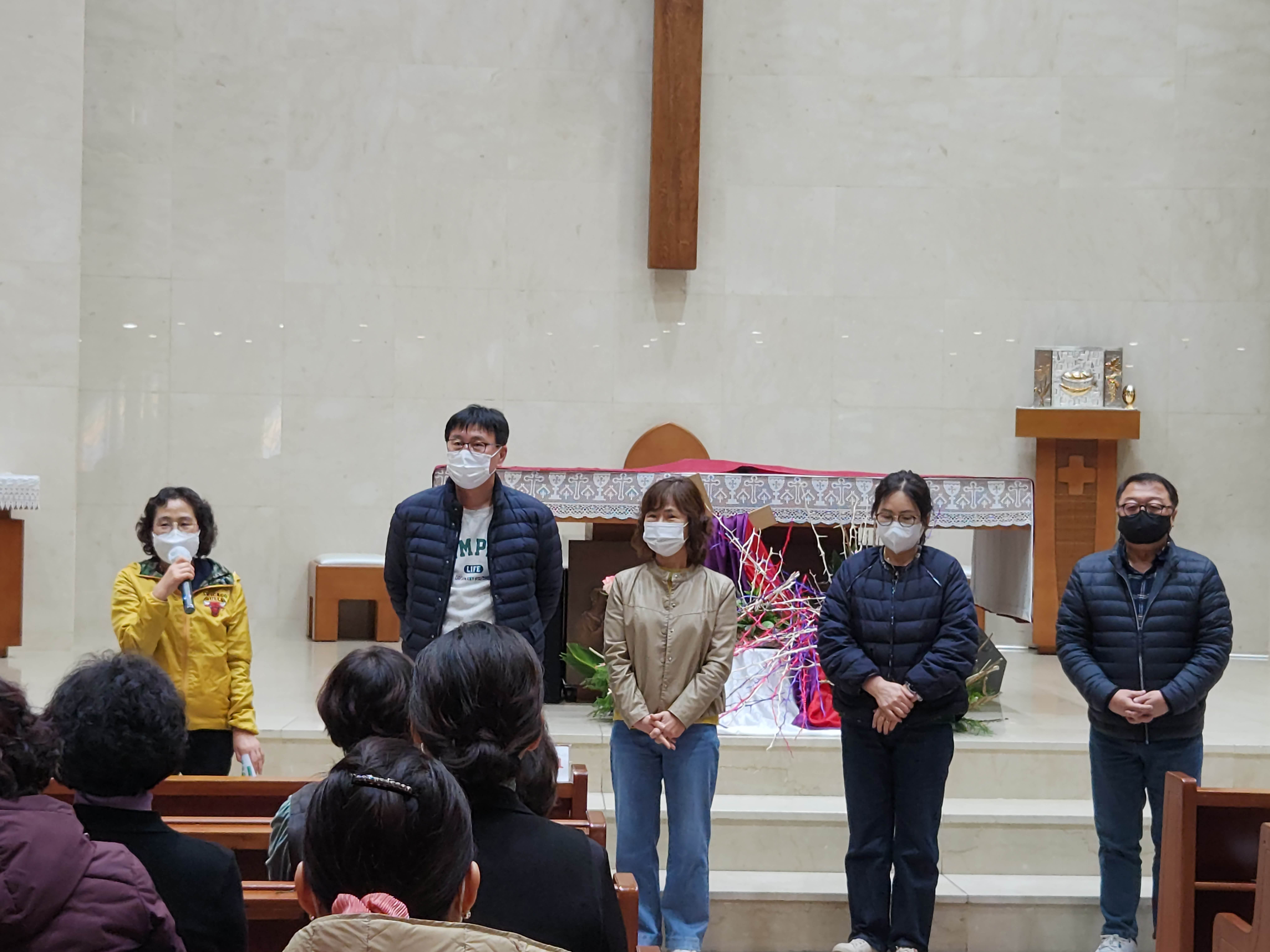 2023년 3월 19일 대성전에서 사목위원, 단체장, 구역장님들이 모여 인사를 나누었습니다