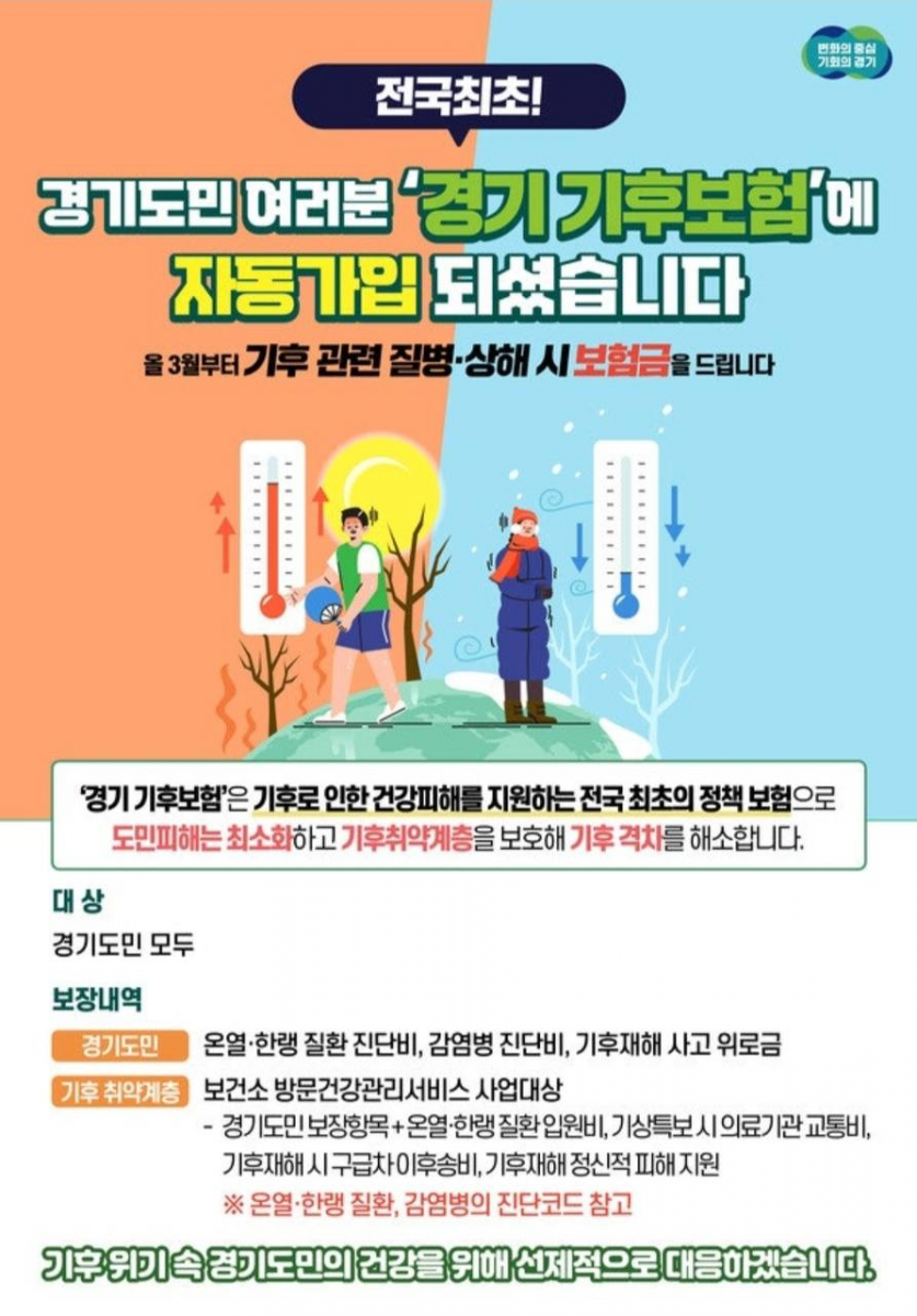 2025년 경기 기후 보험 자동 가입 안내(모든 경기도민 무료)