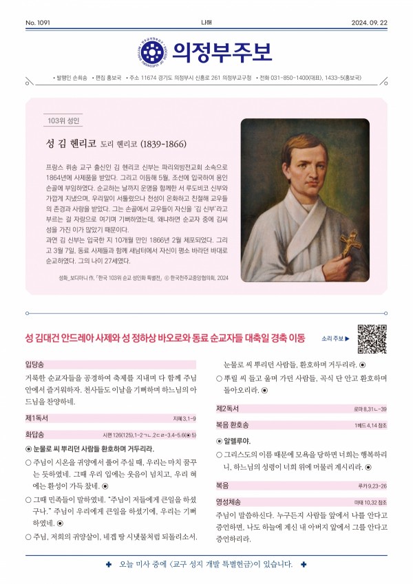 의정부교구와 한국성직자들의 수호자 성 김대건 안드레아 사제 순교자 신심미사