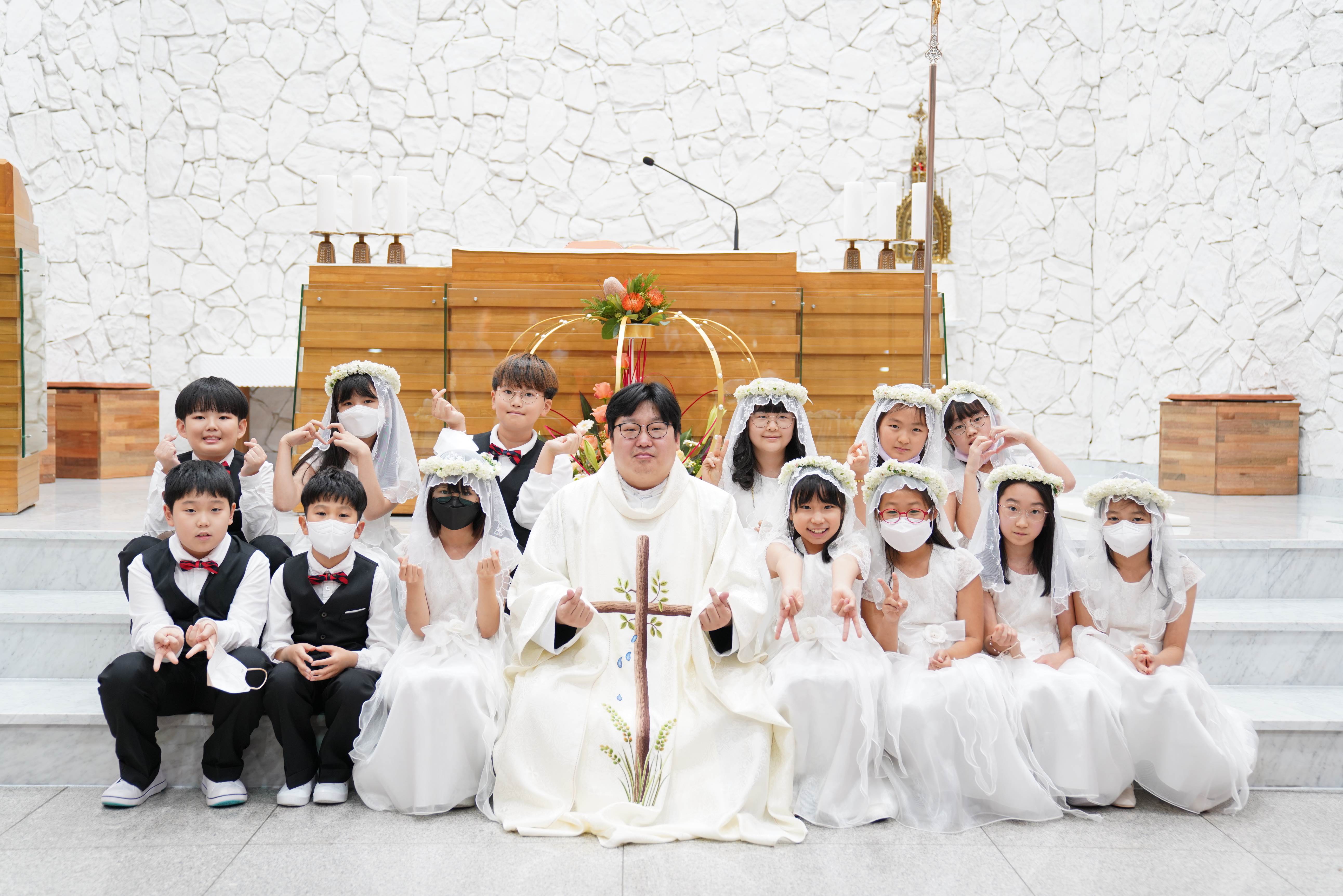 토마신부님의 첫첫영성체식이 되는 것이죠? 우리 아이들도 신부님도 처음으로 기억되는 오늘. 모두에게 아름다운 기억으로 남기바랍니다. ^^