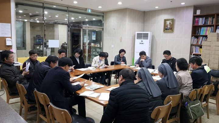2019년 4월 12일 오후7부터 8시30분까지 사목회의가 있었습니다. 신부님과 수녀님 2분 포함하여 총 18명 참석하였습니다. 성지주일, 성삼일미사 및 부활절 준비 논의 등이 있었습니다.