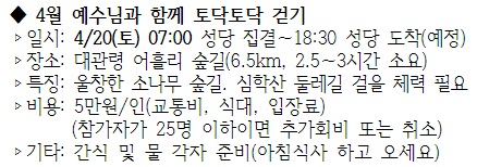 4월 토닥토닥 걷기 안내