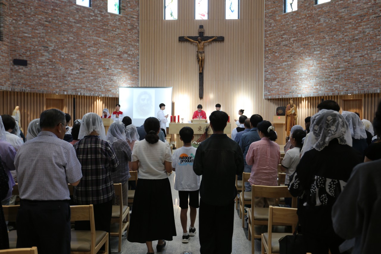3시 파견미사에는 3지구장 신부님(이해일 베드로)께서 미사를 주례해주시어