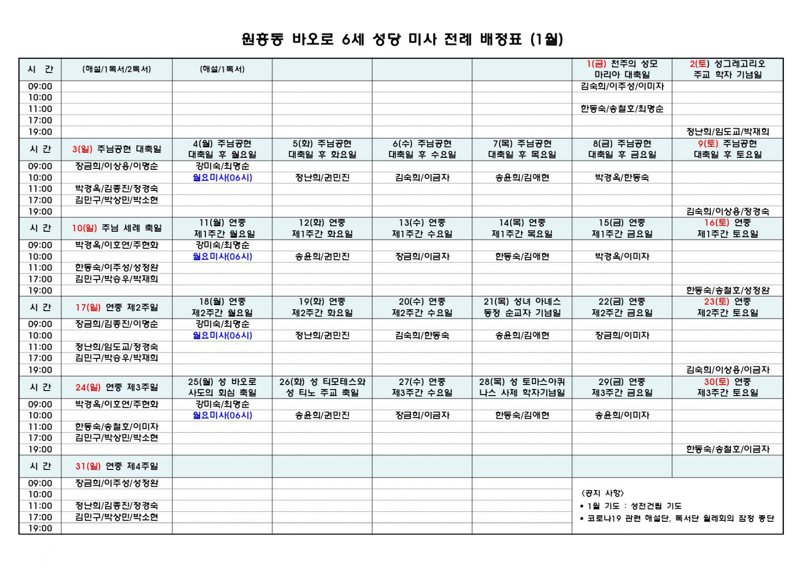 1월 전례배정표