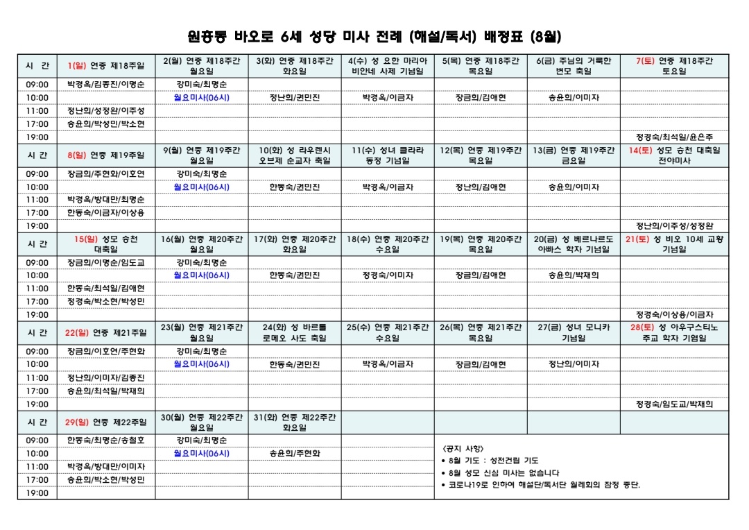 8월 전례배정표