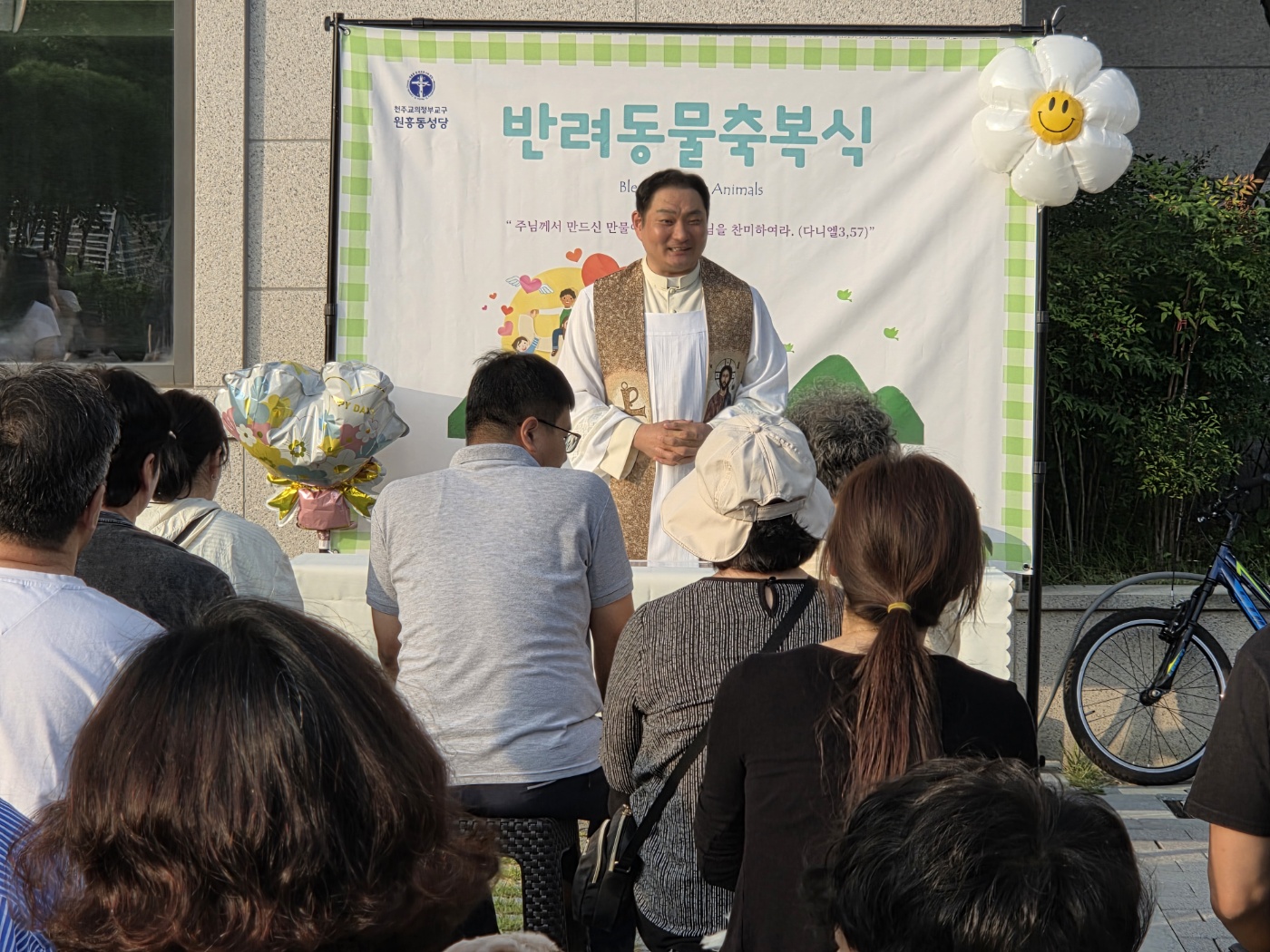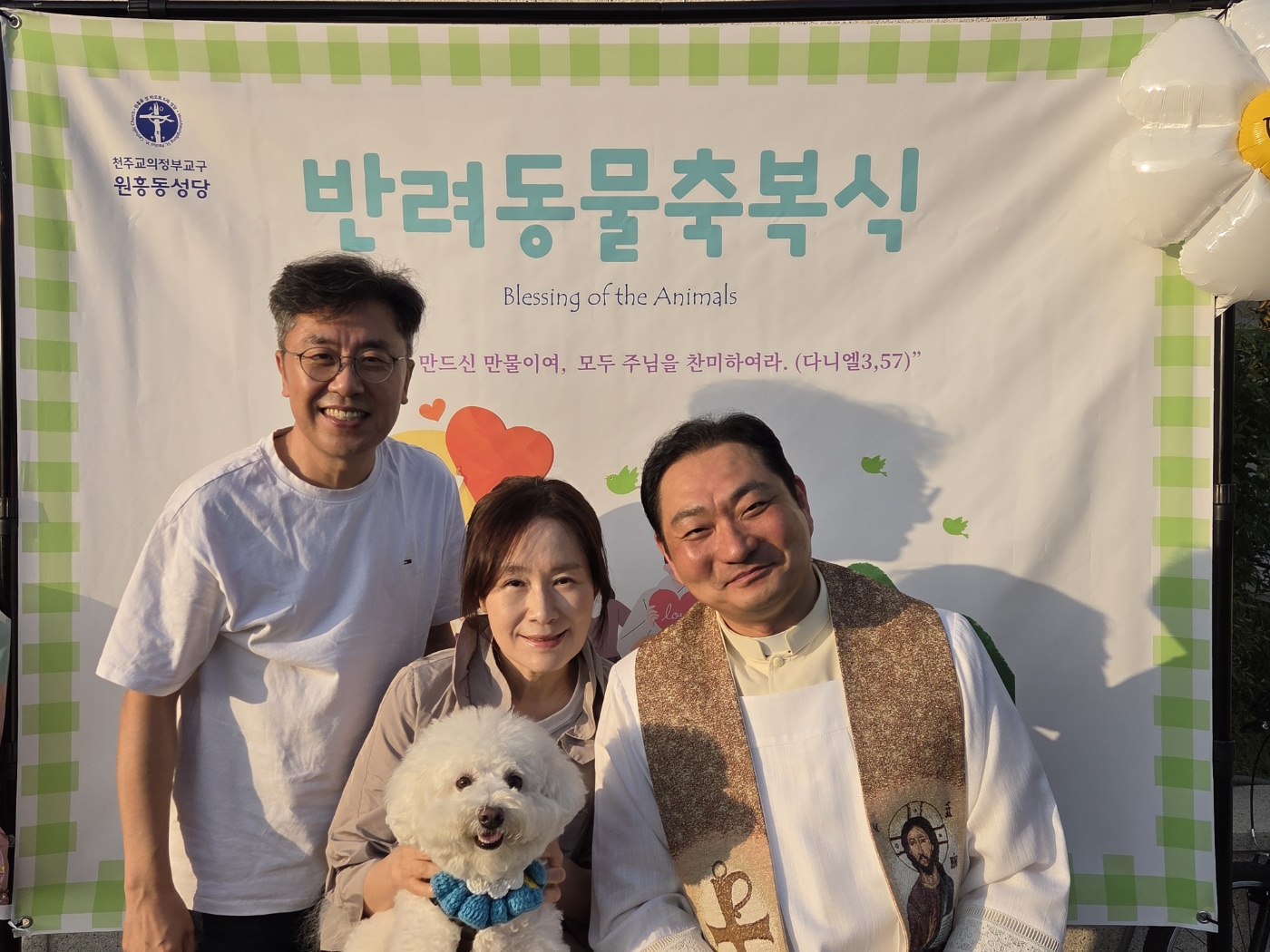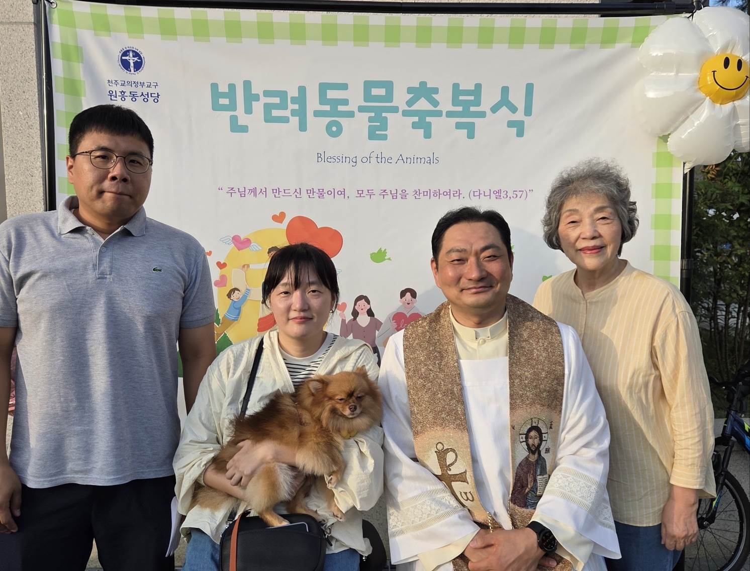 9월27일(토) 오후5시 성당 정원에서 반려견 20마리와 보호자와 함께 첫 반려동물 축복식을 가졌습니다.