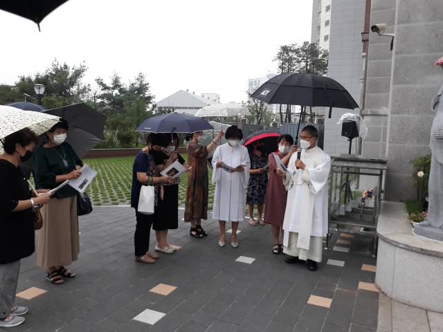 8월 15일 성모승천대축일 오전11시 미사 후 성당야외 성모님상 축복예식이 50여명의 신자들이 참석한 가운데 있었습니다.