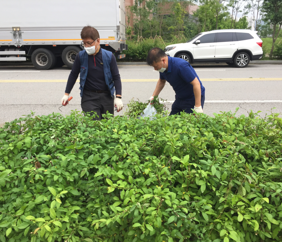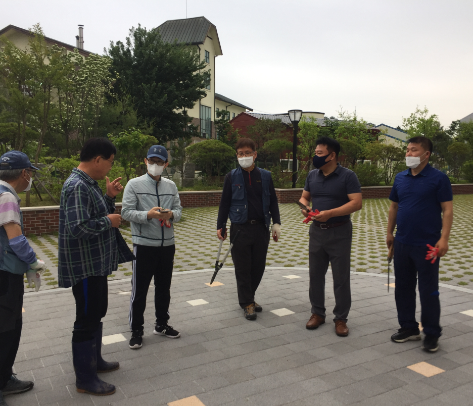 6월5일 오전 6시 레지오와 사목회 형제 7인이 성당 주변의 화단 정리 작업을 하였습니다.