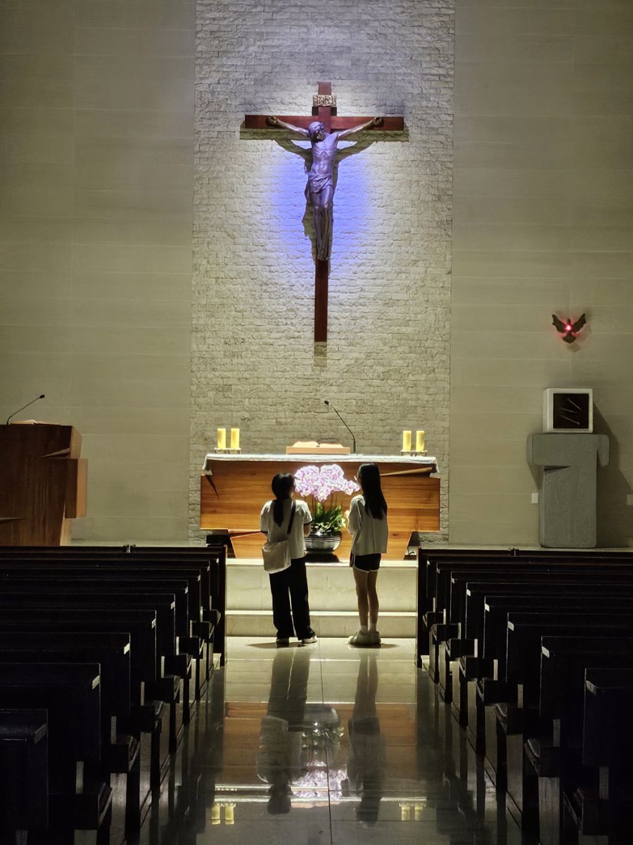 불 꺼진 성당 안으로 들어가서