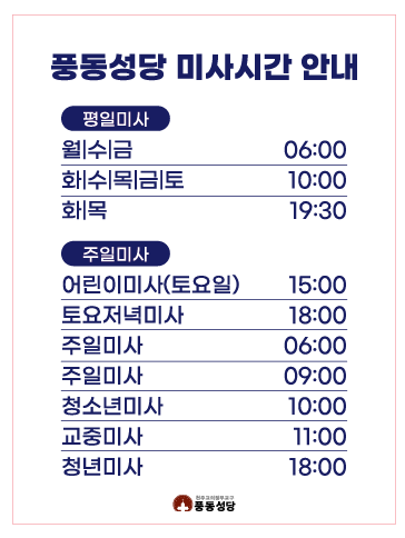 미사시간 변경(토요일 저녁 7시 - 저녁 6시로 변경)