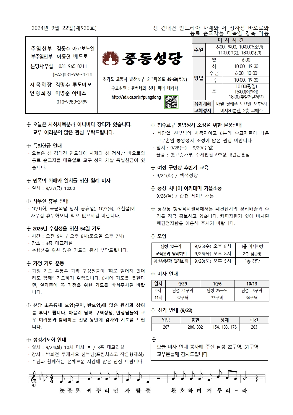 성 김대건 안드레아 사제와 성 정하상 바오로와 동료 순교자들 대축일 경축 이동