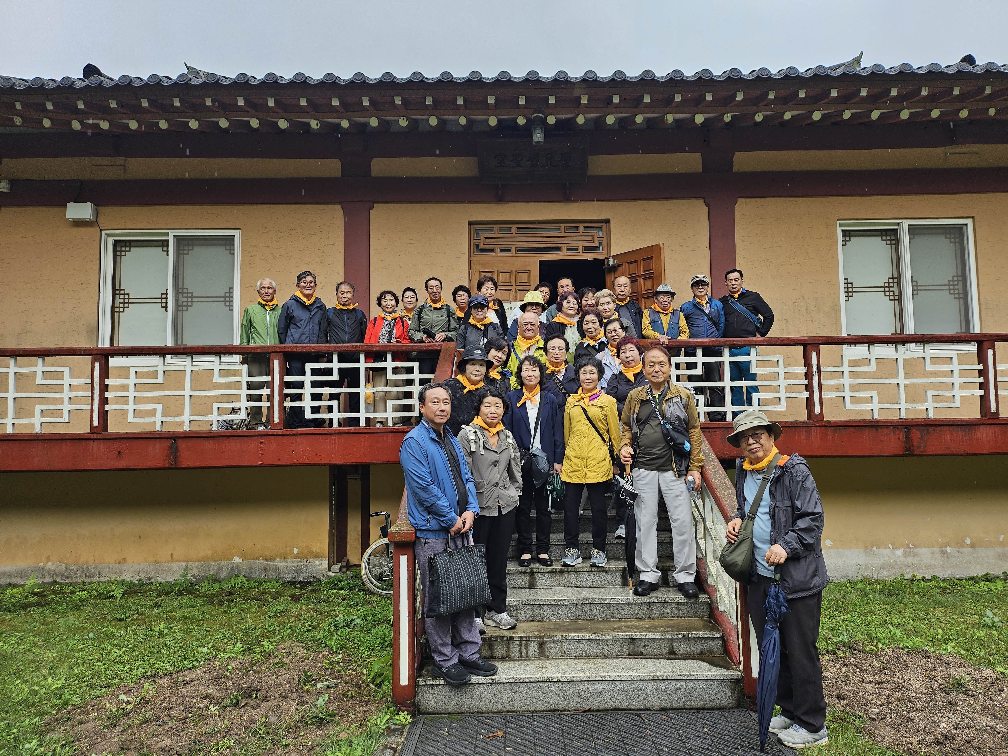 해설사의 설명을 듣고 소성당 앞에서