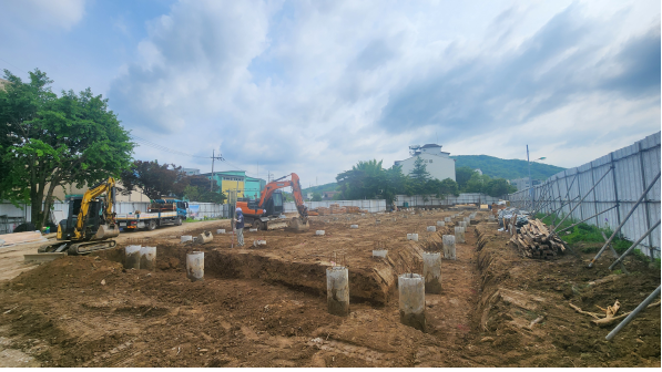 1층 기초바닥 면고르기 및 테두리 줄기초 파기