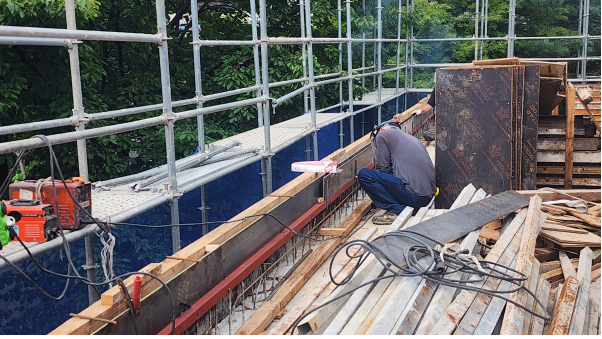 성전 2층 스라브 거푸집 완료, 보 철근 조립 준비