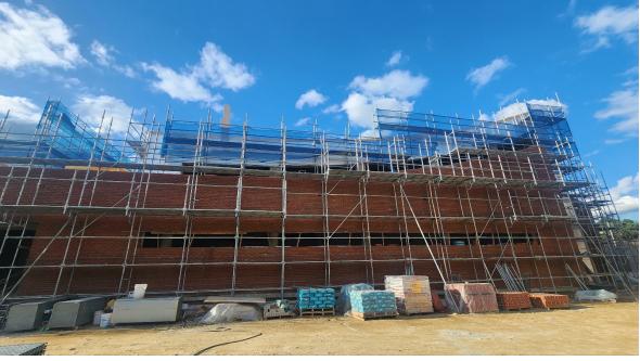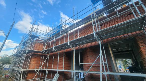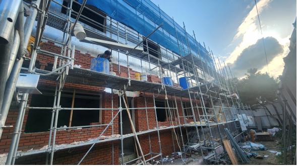 1층 전면 적벽돌 쌓기 완료