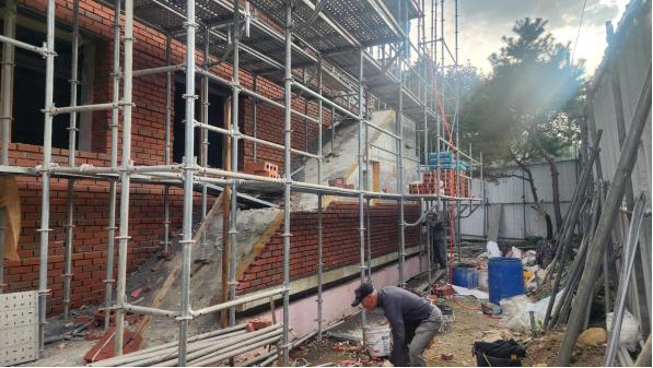 후면 계단실 측벽 적벽돌 쌓기