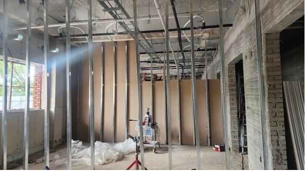 집무실 및 중강당 경량칸막이 STUD(경량골조) 설치 및 석고보드 취부