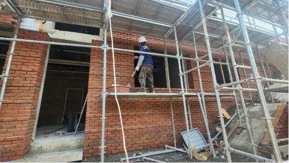 창호설치를 위한 창주변 치장벽돌 줄눈 선 시공