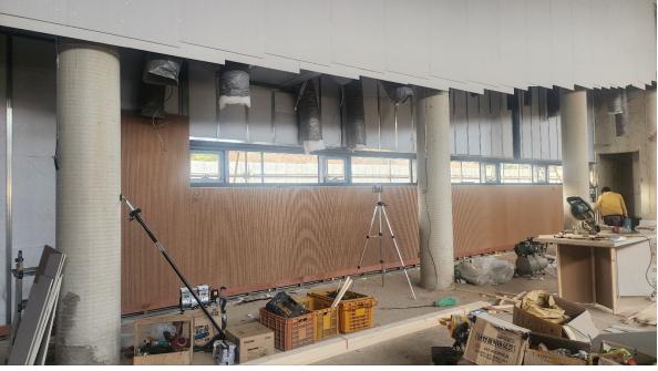 성전 벽체 MDF 라인타공판 취부