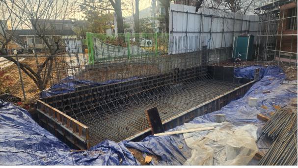 벽화옹벽 기초 철근배근 및 거푸집 설치