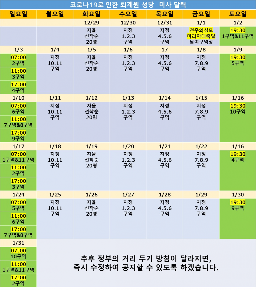 12/29 ~ 미사참례 구역 안내
