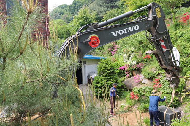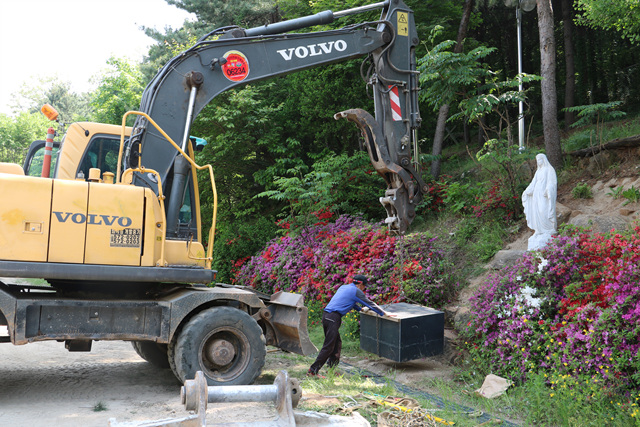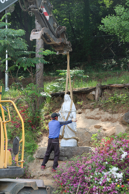 190515 성모상 이전(창고 옆 - 십자가동산)