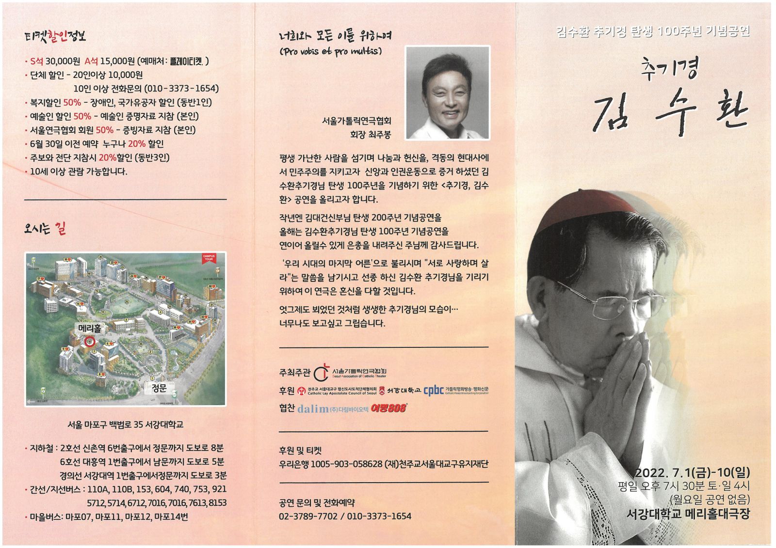 【서울가톨릭연극협회】 ‘추기경 김수환’ 공연 안내
