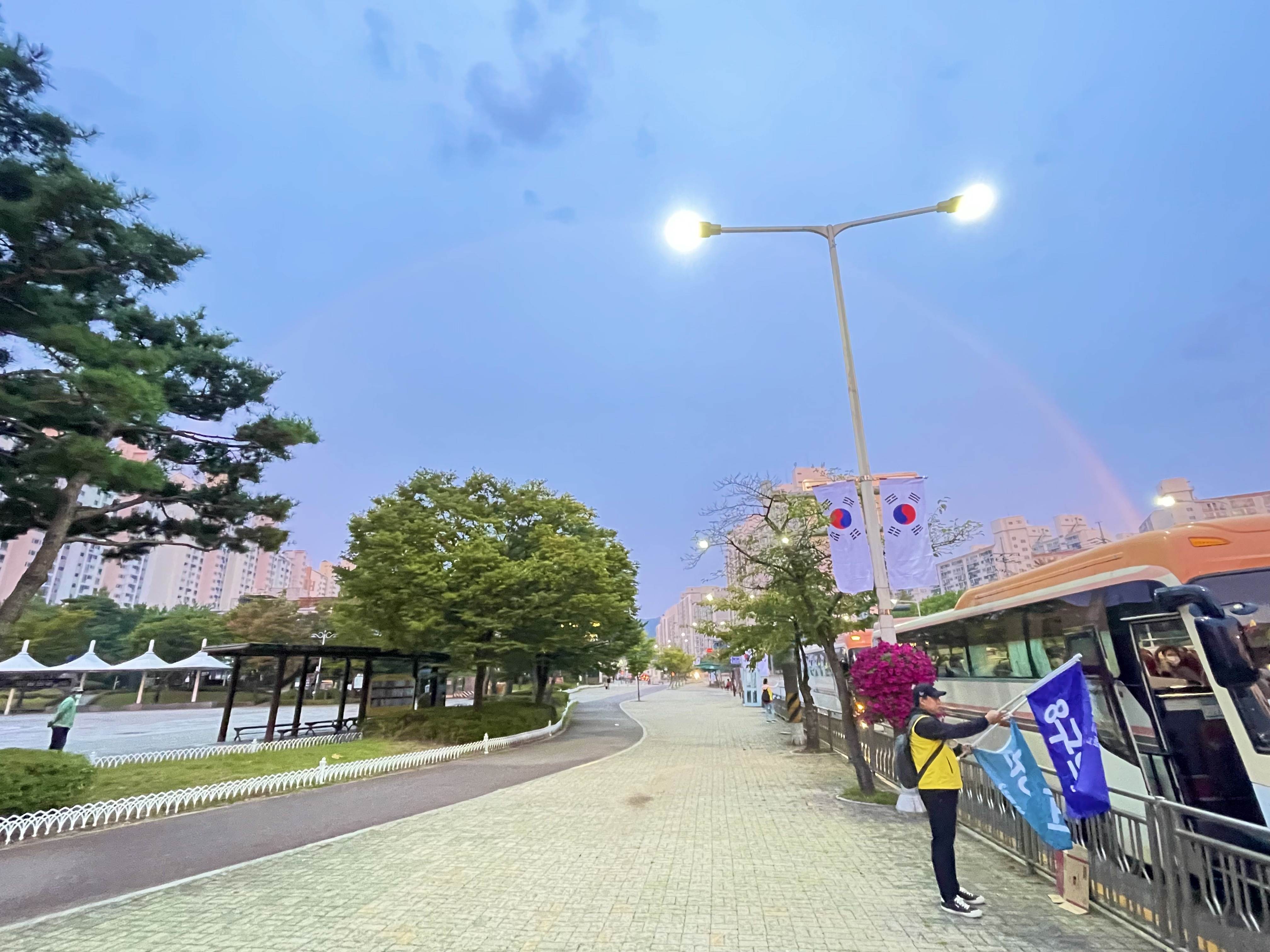 장자못 공원 하차해서 서로 피곤할테데도 서로를 격려해주는 모습이 정말 아름다웠습니다.