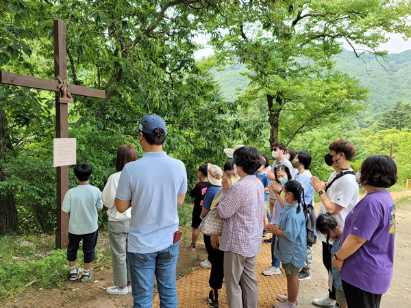 은이 성지에 도착 후 ‘기도의 숲’에 자리를 마련하고, 순례자가 되어 십자가의 길을 돌며 기도해보았답니다.
