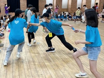 ‘너와 나의 연결고리’는 친구와 협동하며 상대팀의 고리를 끊으며 선전하였지요. 나와 친구의 발목을 묶은 ‘2인3각 판뒤집기’때는 한몸이 되어 서로 기다려주며 판을 뒤집다보니 점차 요령이 생겼답니다. 모든 게임이 나 혼자만 잘한다고 이기는 것이 아니라, 공동체임을 깨닫고 한마음으로 행동해야 최선임을 알 수 있었답니다.