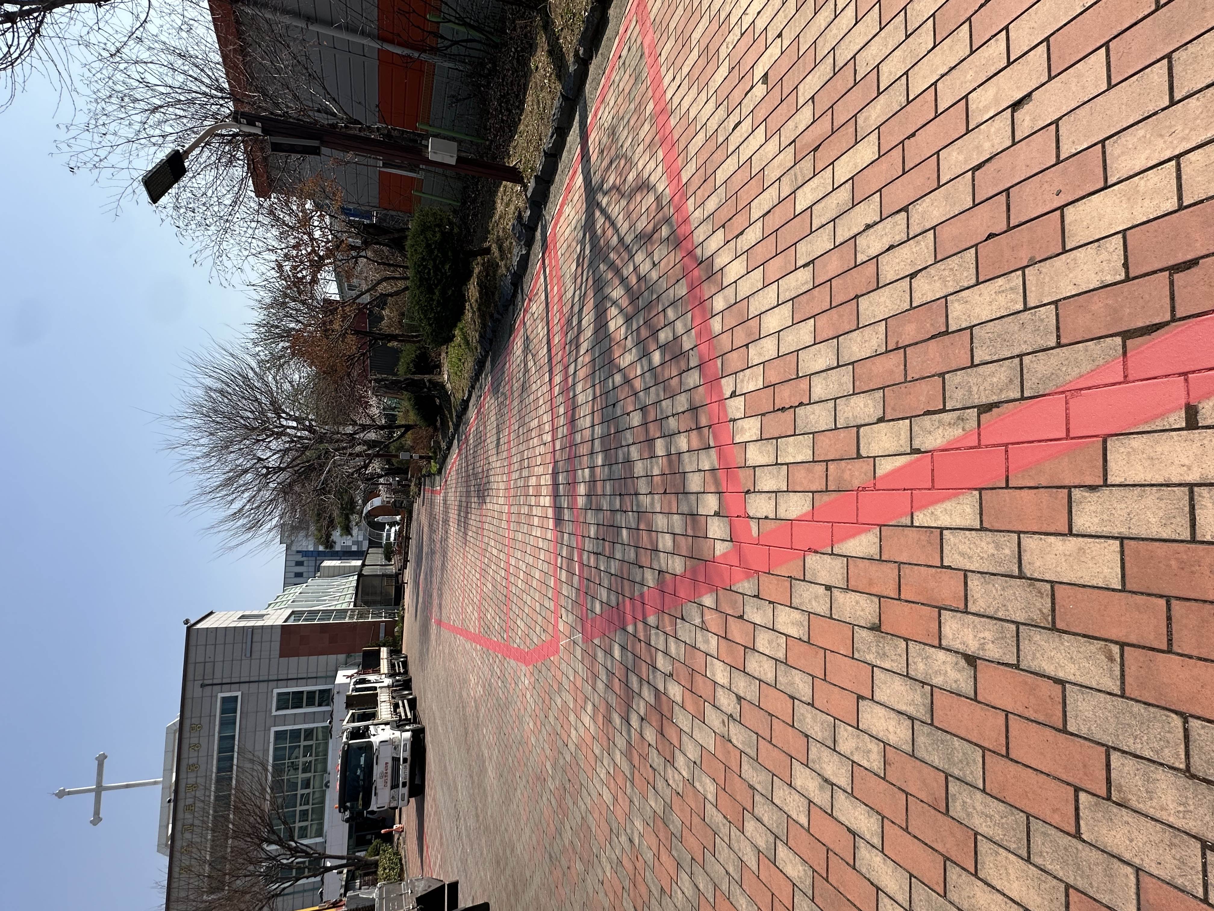 2025년 4월 3일 정문 진입로 공사 및 주차선이 그려졌습니다.
