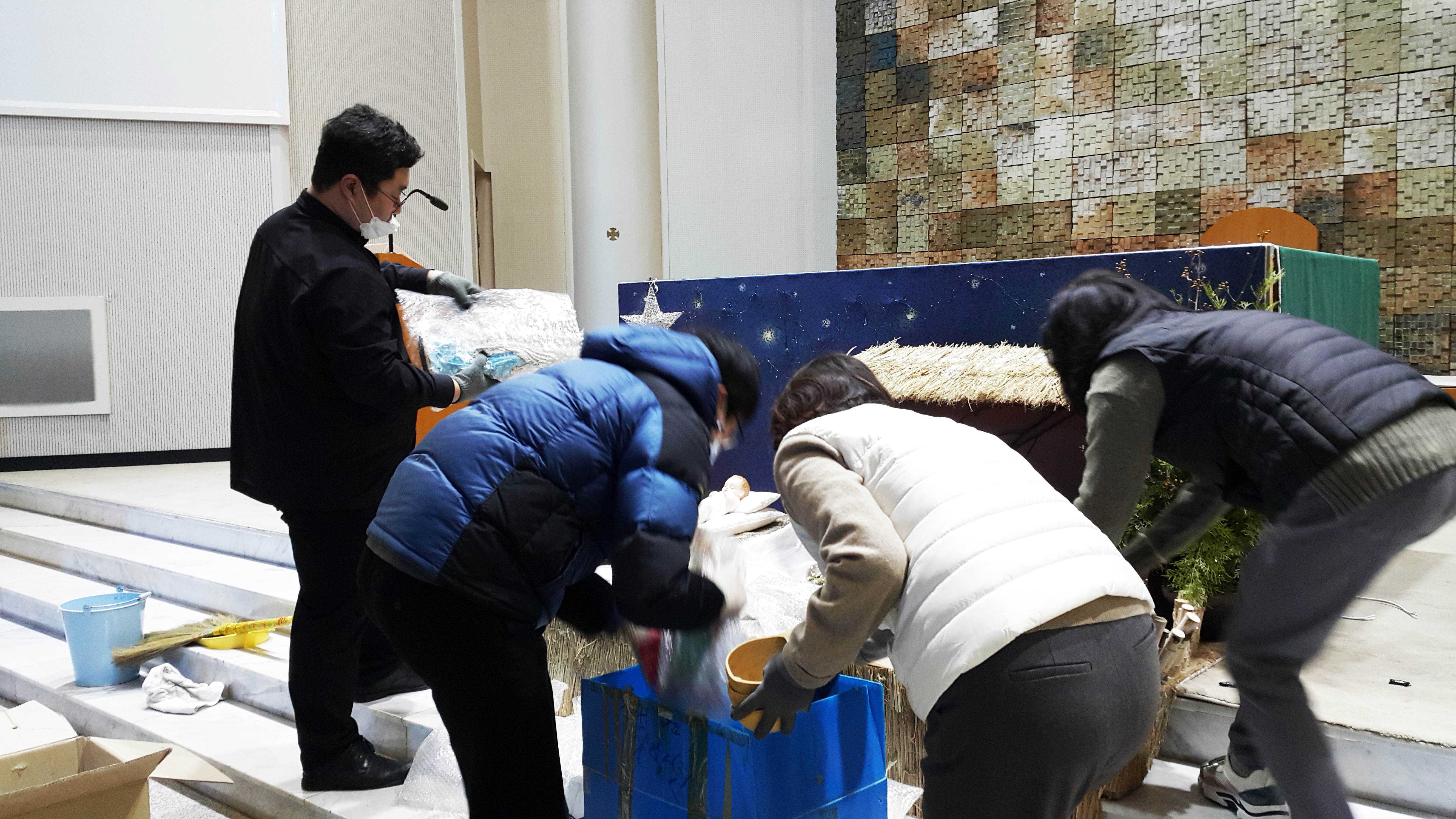 1월 9일 월요일 성탄구유 철거 작업이 있었습니다. 봉사해 주신 형제 자매님들 수고 많으셨습니다.