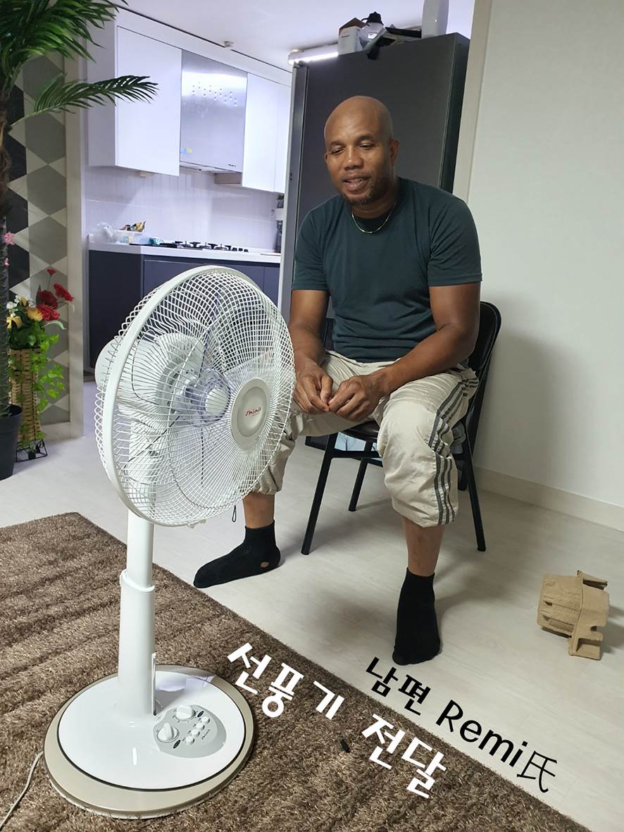 지내는 나이제리아 난민가정에 선풍기를 지원