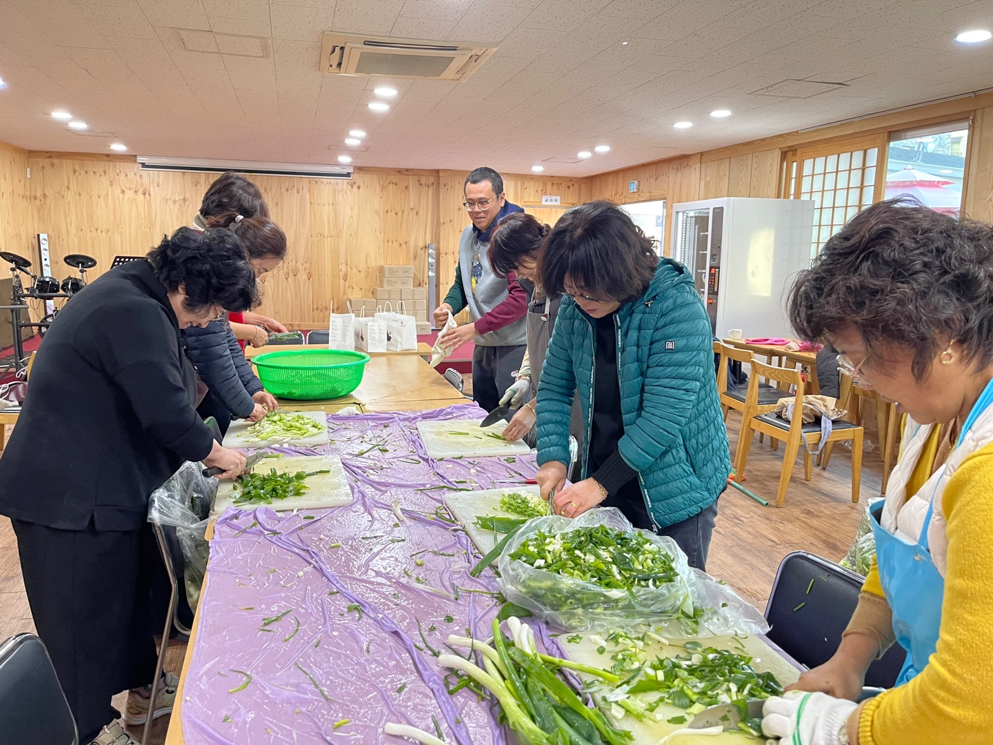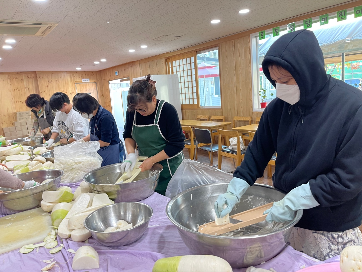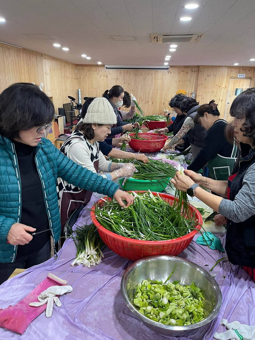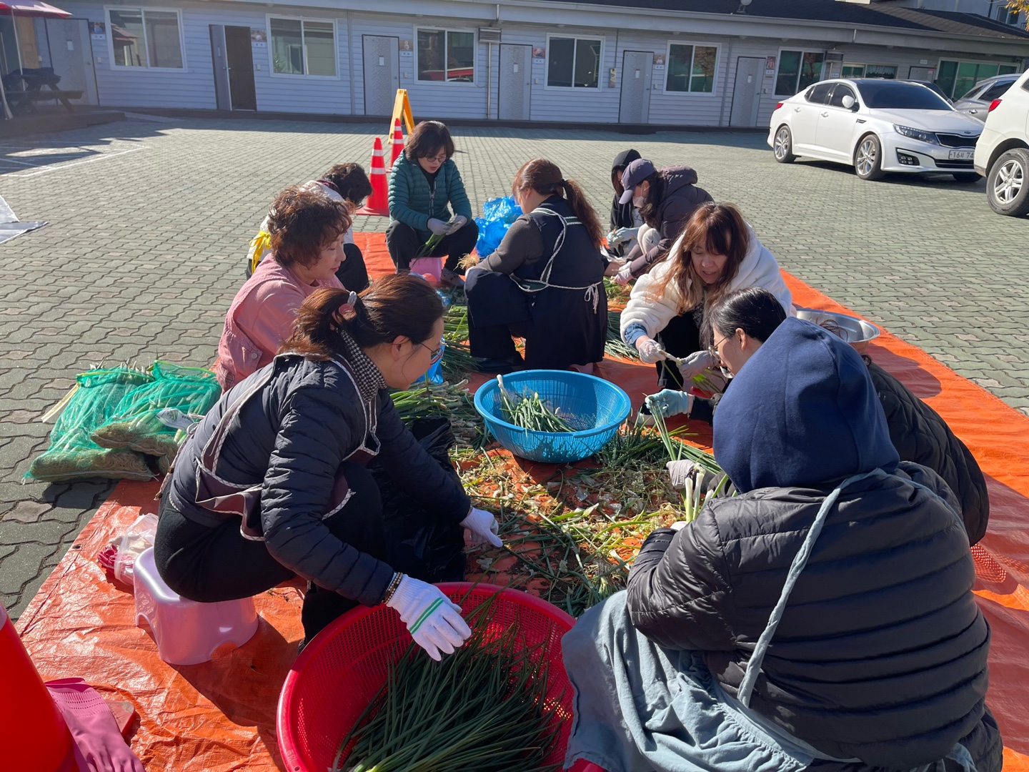 추운 날씨에 배추 420포기 절이고 김장을 준비하는 모습